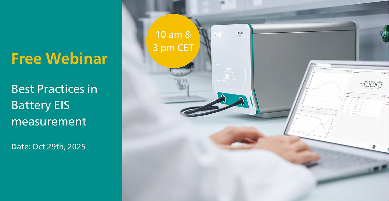 Como representantes oficiales de Metrohm en Chile, le invitamos a participar en el seminario web “Best Practices in Battery EIS Measurement”, enfocado en las mejores prácticas de Espectroscopía de Impedancia Electroquímica (EIS) para el estudio y diagnóstico de baterías.